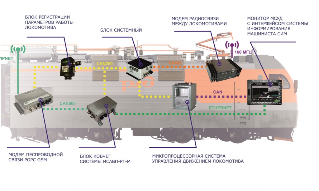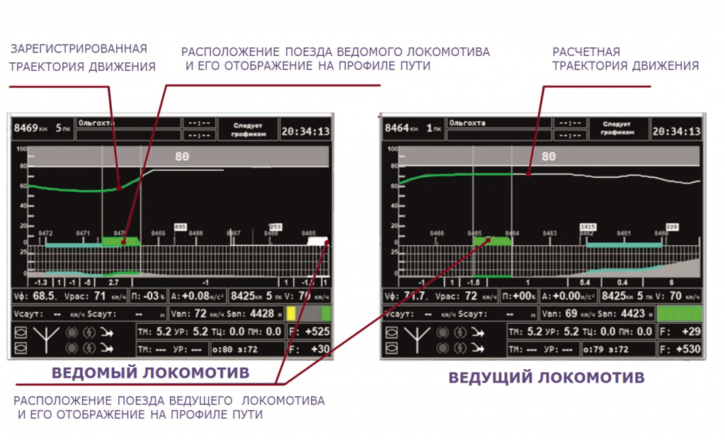 Operation of CTRL@CONNECT is based on the automated train driving system with distributed traction, which is installed on the “head” and “slave” locomotives. Due to the continuous data exchange between the locomotives, system provides the most energy-optimal mode for train motion, taking into account the track profile and traffic safety. The distance between the locomotives selected by the system is determined in each specific case based on a variety of characteristics - speed, mass, track characteristics and other parameters that affect the length of the braking distance.