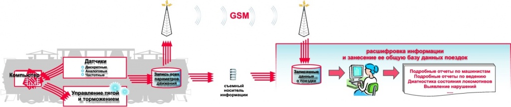 On-board equipment is installed on the locomotive and includes a color graphic display, where driver can see engine parameters, speed, coordinates, track profile, locomotive traffic lights, current and next speed limits, nearest track objects and stations, information on performed schedule , etc. The system allows driver to implement various motion modes - according to the schedule, station-to-station driving time, advisor mode, “virtual coupling” mode (CTRL@CONNECT)